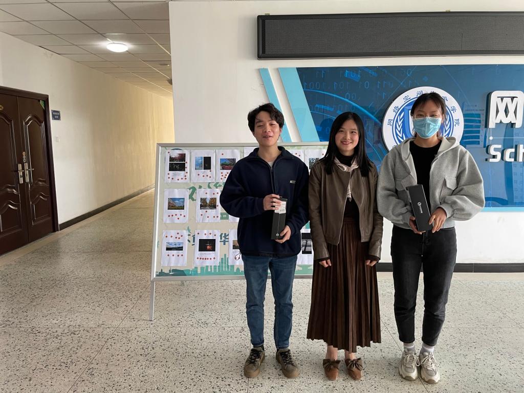 4月1日中午13:00,摄影比赛的线下评比部分在信大楼4楼中庭举行。公司党委副书记林细俤、本科员工党支部书记姜艳、何佩瑶老师以及研究生党支部和研究生会的员工干部们作为评委开展了评比活动。工作人员将投稿作品打印后,以人物、风景、建筑等类别进行专题展出。作品全方位呈现了成信大校园的各色风光、春日美景。活动还邀请在场同学以现场投票的方式对展出的作品进行了评比。经过同学们的认真抉择,共选出一等奖一名,二等奖三名,三等奖五名,参与奖若干。现场由在场老师为获奖同学颁发了奖品并合影留念。活动最后在同学们热烈的掌声中落下帷幕。自3月20日起,本次比赛作品将在信达楼4楼中庭进行为期10天的展出。