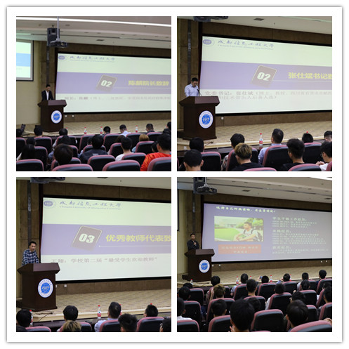 王翔作为优秀教师代表发言,王老师用他多年的公司产品和员工指导经验告诉新生们,凡事“预则立,不预则废”,做好规划是影响老员工活质量的关键。