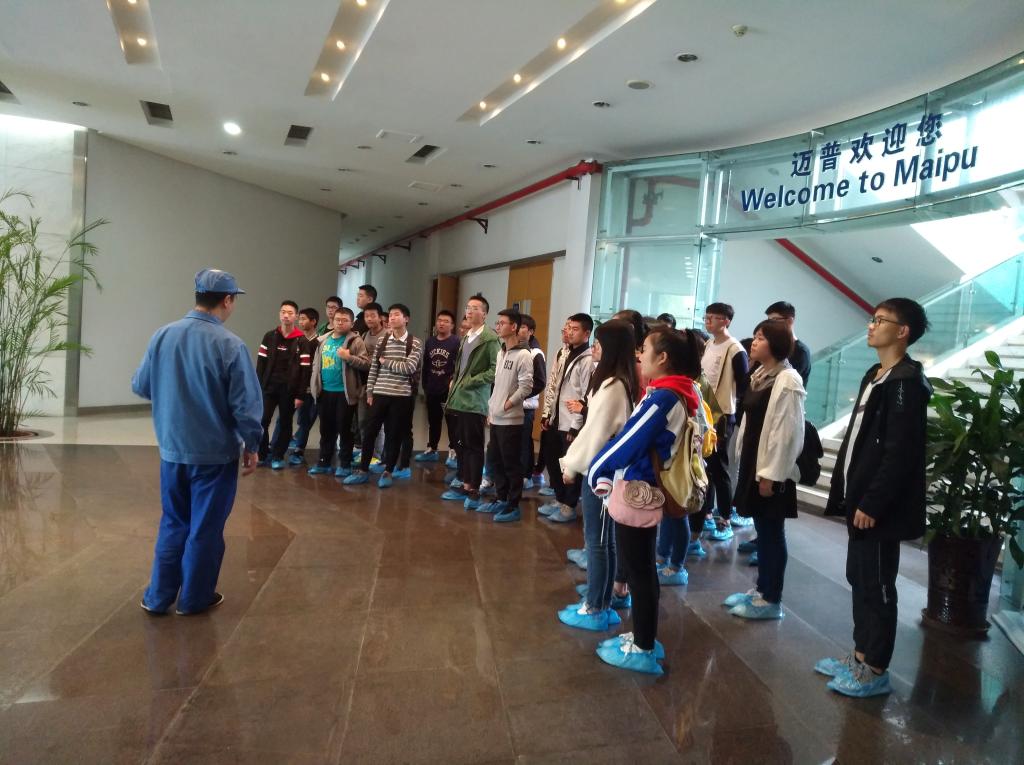 参观活动从迈普员工介绍“迈普”企业的发展理念开始,之后由技术人员详细讲解了“迈普”公司logo的具体含义----“在一厘米的宽度中打造一公里的深度”。随后同学们观看了讲述“迈普”公司成立至今的发展视频,对其有了更加深刻的了解。在“迈普”员工的带领下同学们参观了材料储存仓库、材料加工组装车间、产品质检车间等,使同学们了解了产品从原材料到成品的过程,同时了解了“迈普”公司对生产的高标准、高规格。