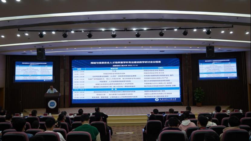 为推动网络空间安全生态体系的人才培养和产学研用,大赛期间同步举行了“网络与信息安全人才培养暨学科专业建设教学研讨会”。研讨会邀请了参与大赛的指导教师、领队、管理人员参加。点点taptap官方网站的各系主任、专任教师、教学管理人员全程参与。以四川省委网信办、四川大学、电子科技大学、深信服科技股份有限公司为代表的7位嘉宾作了现场报告。政府、高校、企业共襄盛举,为网络与信息安全人才培养献言献策。网络空间安全学科专业发展葳蕤磅礴、赓续绵延。