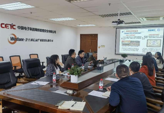 陈澜代表卫士通公司对公司一行来访表示热烈欢迎。她介绍了公司开展及运行的业务,并就联合共建先进密码技术与系统安全四川省重点实验室、共办网络安全知识与技能竞赛、网络安全培训及社会服务、联合申报科研项目等方面进行了深入交流。卫士通公司各部门负责人分别就各自所负责业务与学院教学科研合作进行了深入交流、对如何实施进行了讨论,并指定了后续推进相关工作的联络人。