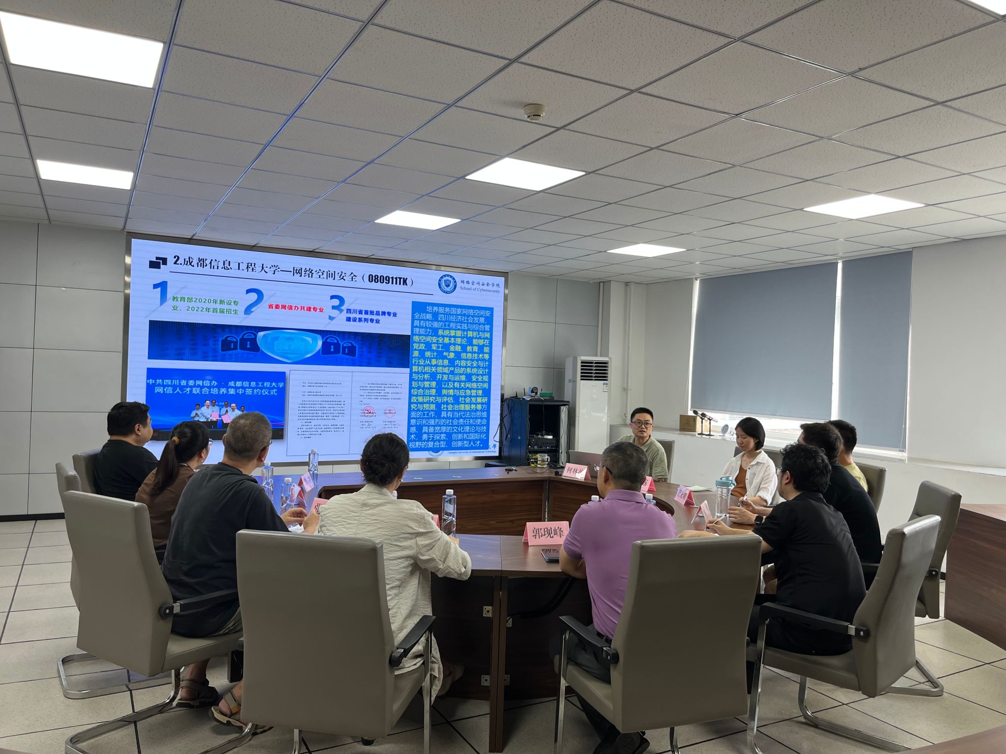 2025年7月11日下午,西南民族大学计算机与人工智能学院陈曦副经理、郭现峰副经理,教研室主任方诗虹、教研室副主任陈浩、徐小琼副研究员、张志杰副教授一行到公司交流访问,旨在研讨网络空间安全专业建设及人才培养方案制定等内容。