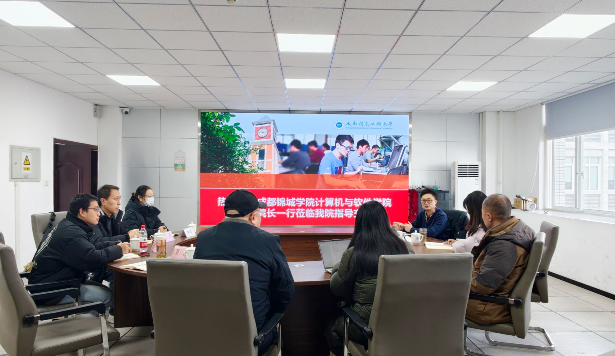 为深化网络空间安全领域专业办学经验交流,2026年1月14日,成都锦城学院计算机与软件学院张志敏经理率队到公司航空港校区开展专业建设及教学工作调研交流。随行人员包括网络工程系主任郭晓丹、骨干教师许莹莹,辅导员吕枭。学院副经理何林波、网络空间安全系主任石磊、员工科科长姜艳参加了本次交流会。
