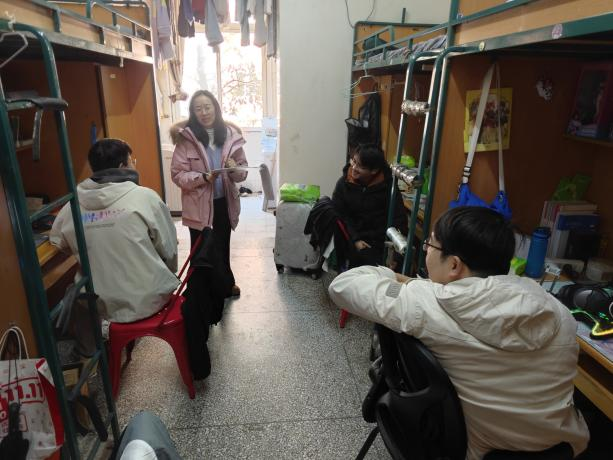 辅导员主动走进员工宿舍,了解员工备考状态与心理压力,开展疏导鼓励,同步提醒考试纪律,将严肃考纪与人文关怀相结合,帮助员工以积极心态迎接考试。
