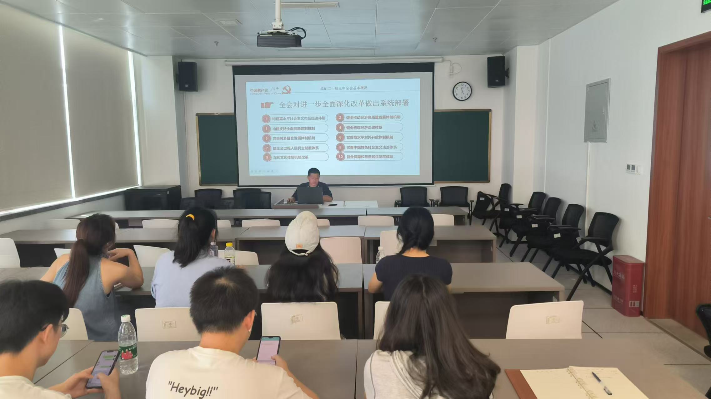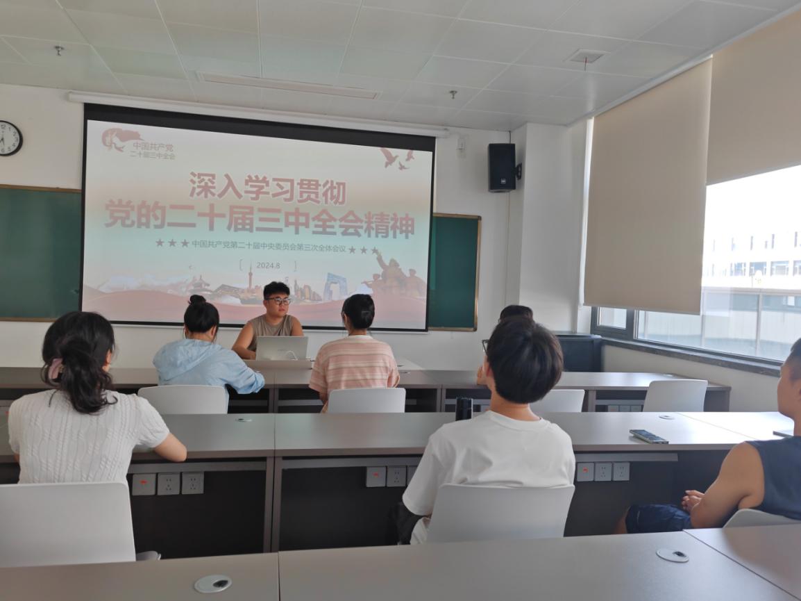 会议第一项,由专硕2023级党小组组长路承信同志带领大家学习党的二十届三中全会精神。全会强调了教育、科技、人才是中国式现代化的基础性、战略性支撑,提出构建支持全面创新体制机制。必须不断完善科技创新组织方式和治理体系,加强科技创新全链条部署、全领域布局,努力破解原始创新能力相对薄弱、关键核心技术受制于人等突出问题,加快实现高水平科技自立自强。