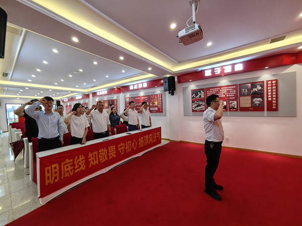 全体党员首先来到“党性与公仆意识教育”主题教室接受教育。主题教室以习近平总书记提出的“新时期好干部的标准”为标尺,打造了八大板块内容。党员们在张仕斌的带领下,齐声诵读廉洁誓词,并庄重宣誓,争取做“信念坚定、为民服务、勤政务实、敢于担当、清正廉洁”的好党员、好干部。