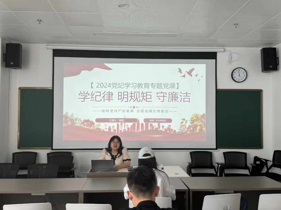 随后,姜艳同志对党支部全体党员提出要求,一要认真学习《中国共产党纪律处分条例》,按照《条例》严格要求自己,树立良好的学术风气纪律意识;二要结合专业实际,准确把握这次党纪学习教育的目标要求,认真学纪、知纪、明纪、守纪,搞清楚党的纪律规矩是什么,弄明白能干什么、不能干什么,始终做到忠诚干净担当。