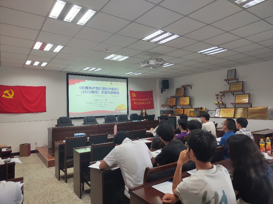 党支部书记何佩遥同志随后组织全体党员集中学习了《中国共产党纪律处分条例》,并对条例的主要内容进行了深入解读。她特别强调,支部全体党员必须深刻领会《条例》的重大意义,全面准确地理解《条例》的丰富内涵,坚决执行并维护党的纪律,为全面从严治党新征程提供坚实的纪律保障。她呼吁大家将铁的纪律转化为日常习惯,并自觉遵循这些行为规范,确保纪律要求内化于心、外化于行。