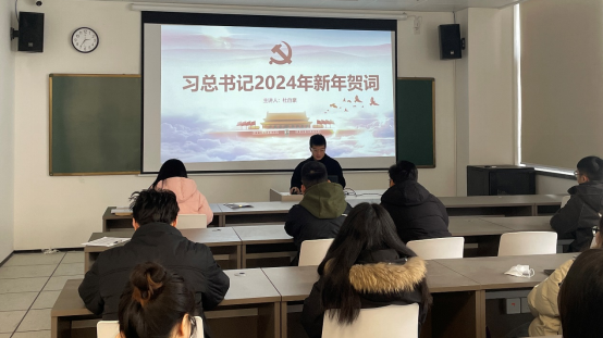 本次生活会由预备党员杜自豪带领大家学习《习近平总书记2024年新年贺词》。