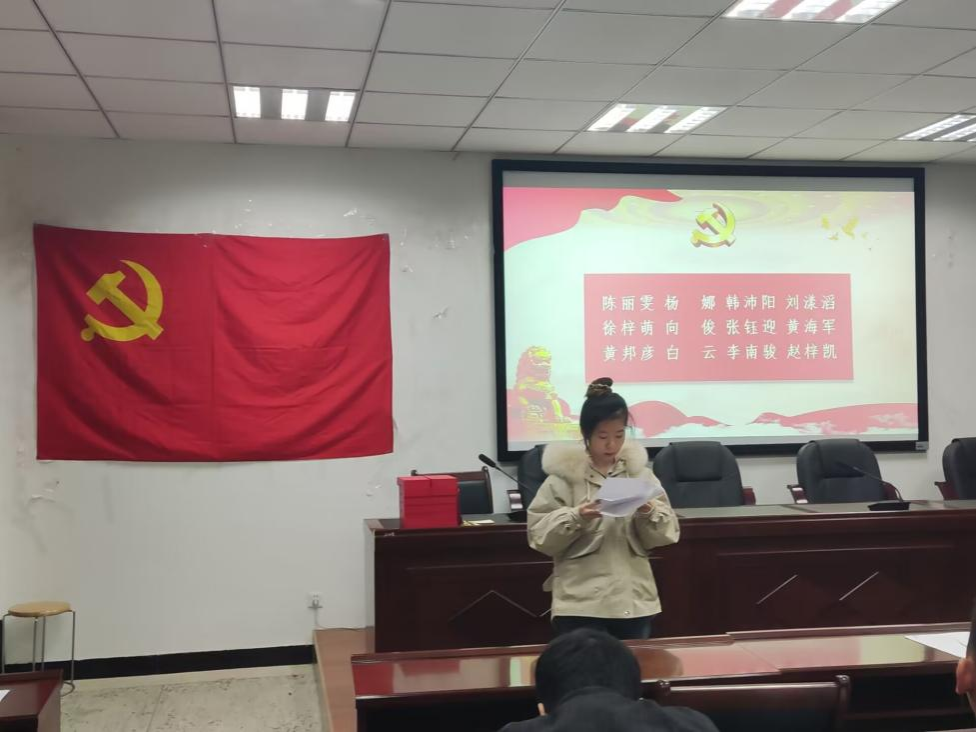 会议的最后,支部书记贾茜老师对十二名转正同志的表现表示肯定,并希望所有党员在学习、生活、工作等各方面更加严格要求自己,改正缺点、发扬优点,树立良好的模范带头作用,争做优秀党员,要始终牢记初心使命,对党忠诚,在新时代的赶考之路上跑出当代青年最好的成绩。