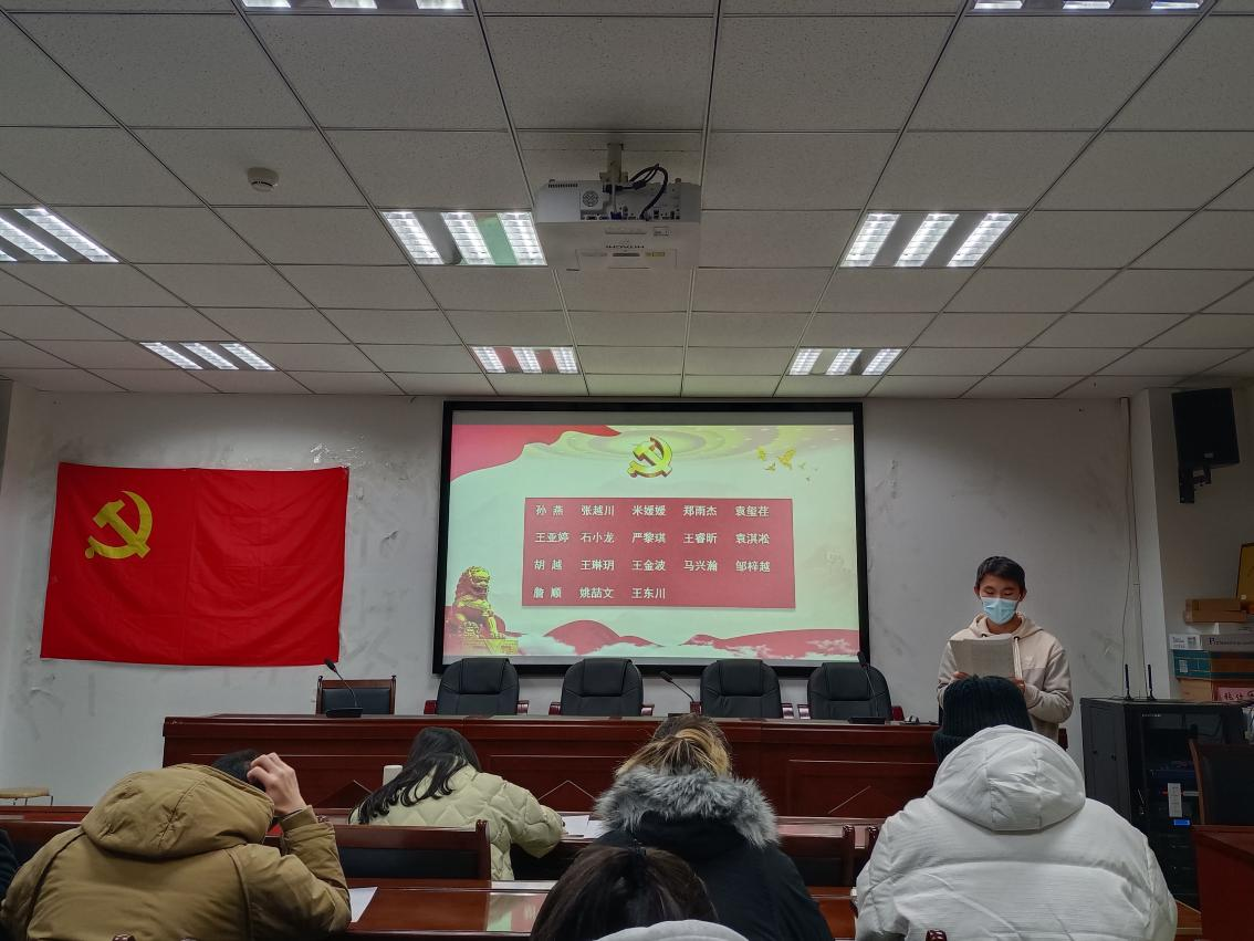 孙燕、詹顺、王睿昕等18名发展对象依次宣读入党志愿书并介绍个人基本情况,大家表明自己会更加坚定理想信念,不忘初心、牢记使命。随后入党介绍人介绍发展对象有关情况,并对其能否入党表明意见,支部委员会报告对发展对象的审查情况,与会党员对发展对象能否入党进行充分讨论,并采取无记名投票方式进行表决,并由党支部书记贾茜宣读了投票结果,对孙燕、詹顺、王睿昕等18名同志的赞成人数超过应到会有表决权的正式党员的半数,同意接收其为预备党员,通过党支部表决同意接收的预备党员同志作表态发言。