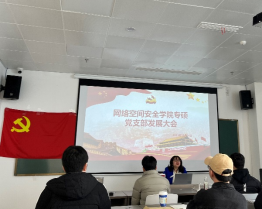 最后,专硕党支部书记姜艳就本次发展、转正大会和组织生活会做出总结,身为研究生党员时刻牢记自己的使命和责任,应带头做好模范,不断提高自身素质和能力,在学术研究中勇攀科技高峰,在社会实践中践行初心使命。