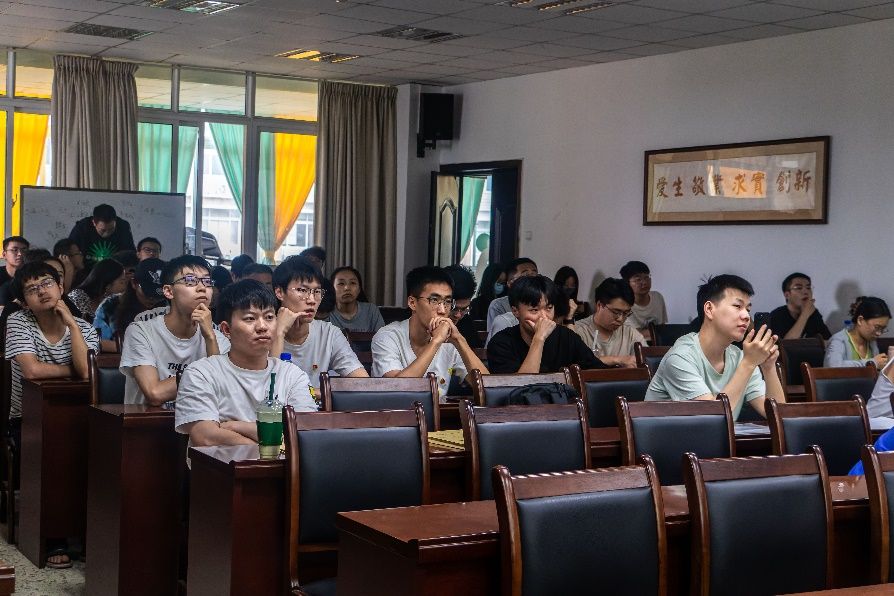 魏治锬同志结合自己研究生期间的竞赛和科研经历,向大家分享了如何丰富自己的研究生生活,并分享了自身的就业经历和经验;尹源源介绍了考编的条件和准备过程,并分享了如何搜集相关资料和如何总结经验;杜岩和周仁浩同志从各方面分享了就业的经历,并鼓励大家要及时舒缓压力,过一个丰富且快乐的研究生生活。四位毕业生的精彩分享,让在场的同学们备受鼓舞。