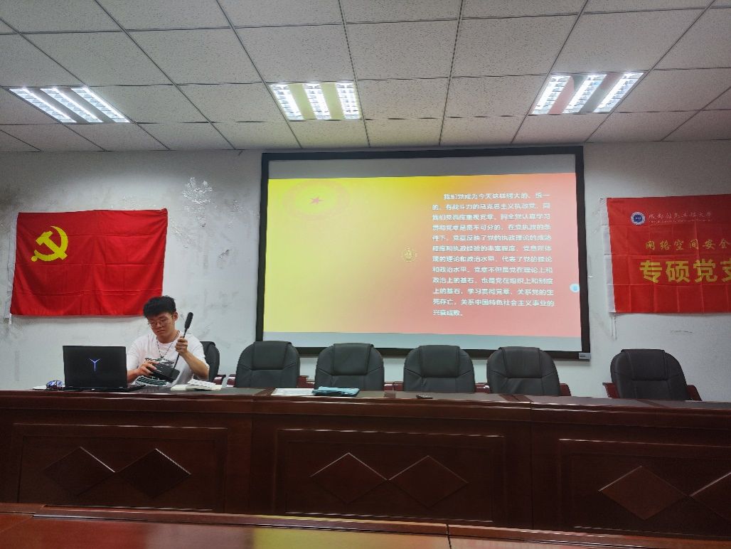为深入学习贯彻习近平新时代中国特色社会主义思想,进一步强化党员爱党爱国教育,同时充分发挥党员先锋模范作用。6月14日下午,学硕、专硕党支部开展了“永葆家国情怀,奋斗奔赴山海”主题党日活动,本次主题会议由专硕支部书记姜艳主持,全体研究生党员参加。