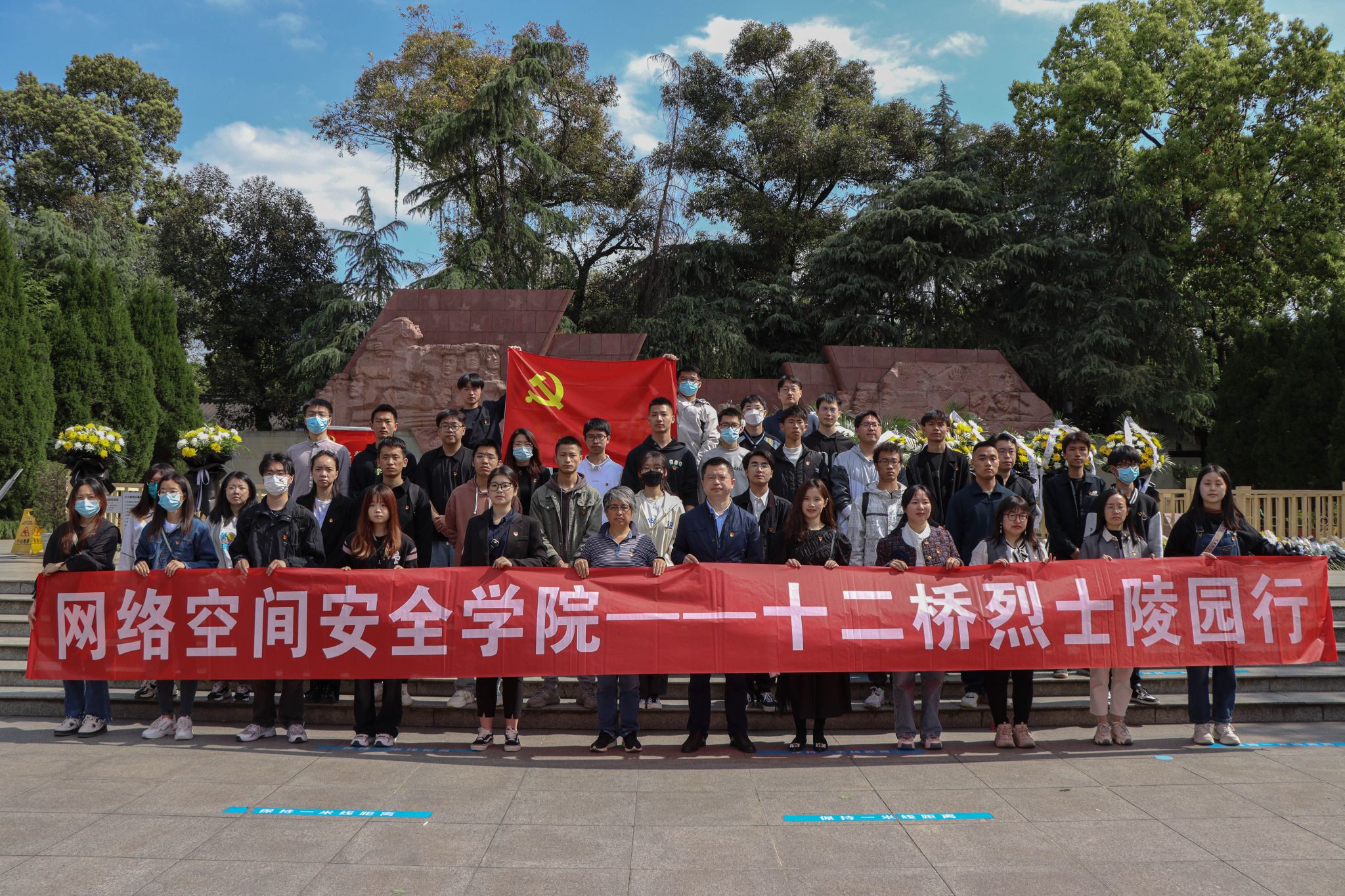 当日,十二桥烈士陵园庄严肃穆,园内苍松翠柏林立。在雄壮高昂的国歌声中,祭扫活动正式拉开帷幕。首先全体同志对烈士进行默哀,深切缅怀为民族解放、国家富强和人民幸福英勇献身的革命烈士,向革命先烈致以最崇高的敬意。而后在公司党委副书记陈智勇同志的带领下,全体党员高举右拳,重温入党誓词,接受党性洗礼,铭记初心使命。最后全体同志有序走向纪念碑前侧,缓缓献上鲜花,在阶梯上合影留念。