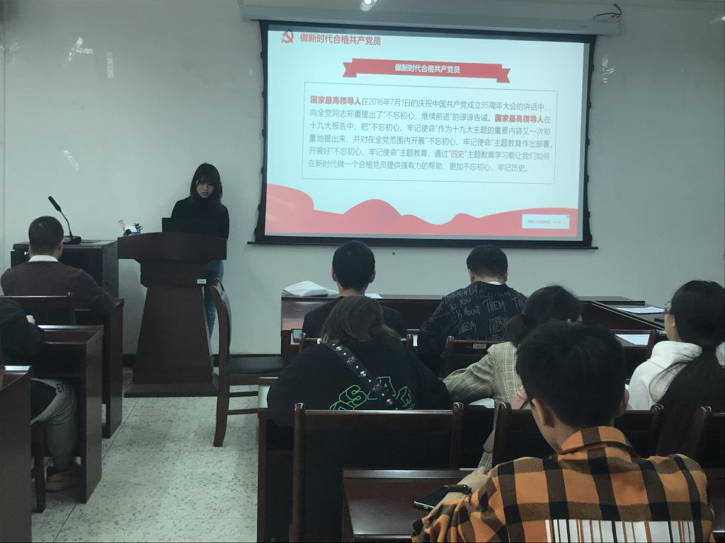 随后党支部副书记吴宇娇同志为支部党员上专题党课,讲解党史。她指出,全体党员要加强党史学习教育,树立正确党史观,不忘初心,牢记使命,增强理论自信,锤炼党性修养,发扬奋斗精神、奉献精神,切实为广大师生做好服务。