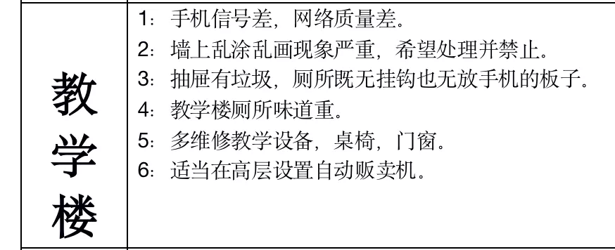 (一)相关教学楼问题问题反映: