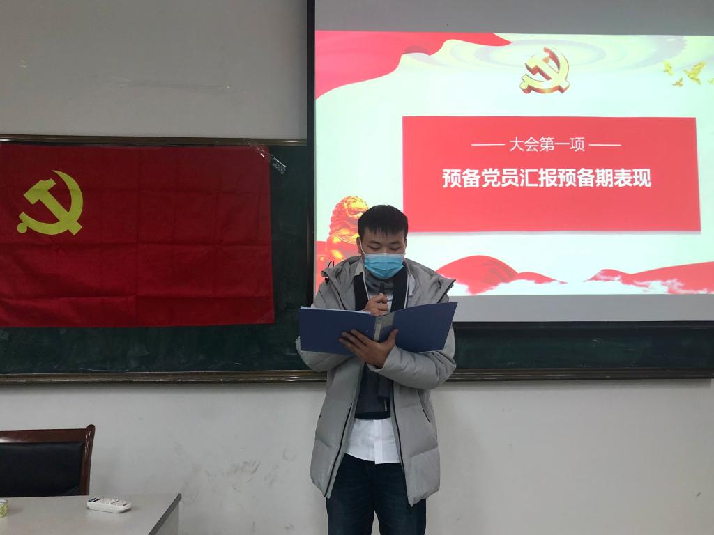 随后,大会进入第二阶段,预备党员转正大会。主持人李澎介绍大会的流程后,韩颖等12名预备党员汇报自己在预备期间的工作学习情况,正式向党支部提出转正申请。他们在汇报过程中,客观评价自身情况,并表示要坚持理论与实践相结合的原则,加强党性修养,努力做好本职工作,尽职尽责服务同学。而后,入党介绍人分别介绍预备党员在预备期的表现情况及意见,支委会向支部大会报告对申请人的审议情况,与会党员发表意见,对其能否转正展开充分讨论,并进行无记名投票表决。支部认为,申请人态度端正、立场坚定,在工作上认真负责,在生活中乐于助人,同意韩颖等12位预备党员按期转为正式党员,希望他们能够在实践中改正自己的不足,发挥先锋模范带头作用。