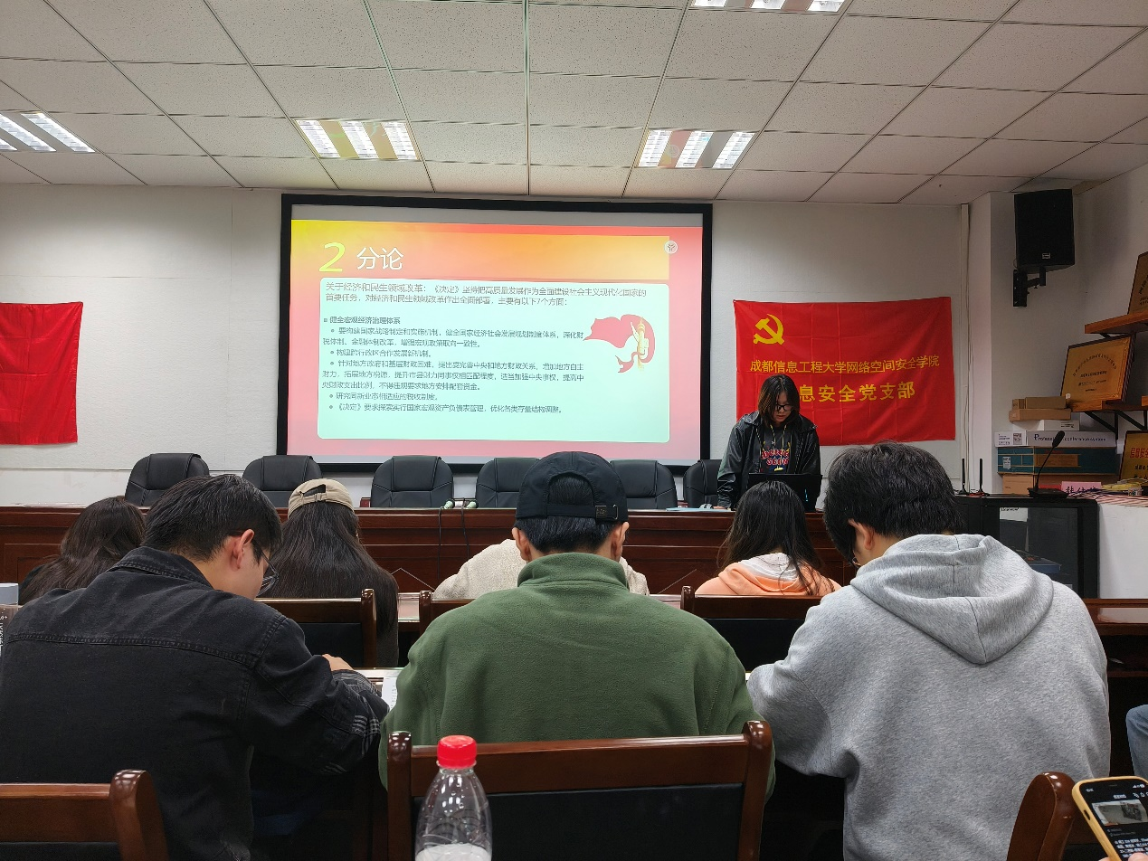 此次学习分享会的召开,不仅加深了党员们对党的二十届三中全会精神的理解,也为信安网安员工党支部今后的工作指明了方向,激励全体党员以更加饱满的热情投入到学习和工作中,为实现学院的发展目标而努力奋斗。