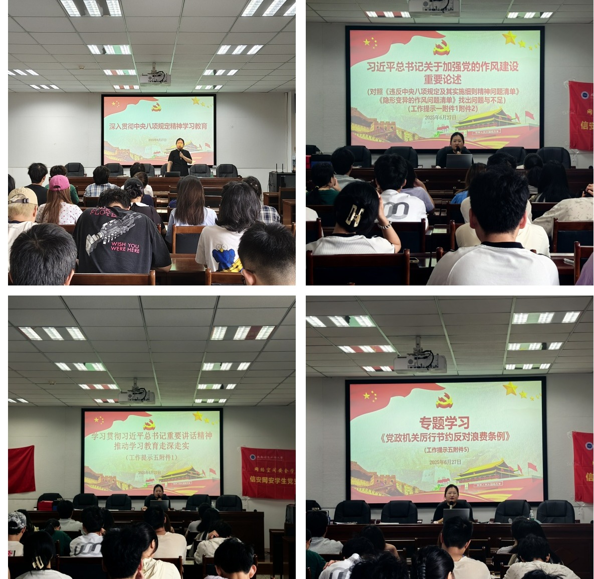 接下来,韩阳围绕《党政机关厉行节约反对浪费条例》进行专题教育。她要求全体党员和入党积极分子时刻保持警醒、严于律己,强化党员意识,明确行为边界,做到知敬畏、存戒惧、守底线,勉励大家在今后的学习与生活中不忘初心、砥砺前行,争做新时代优秀共产党员。
