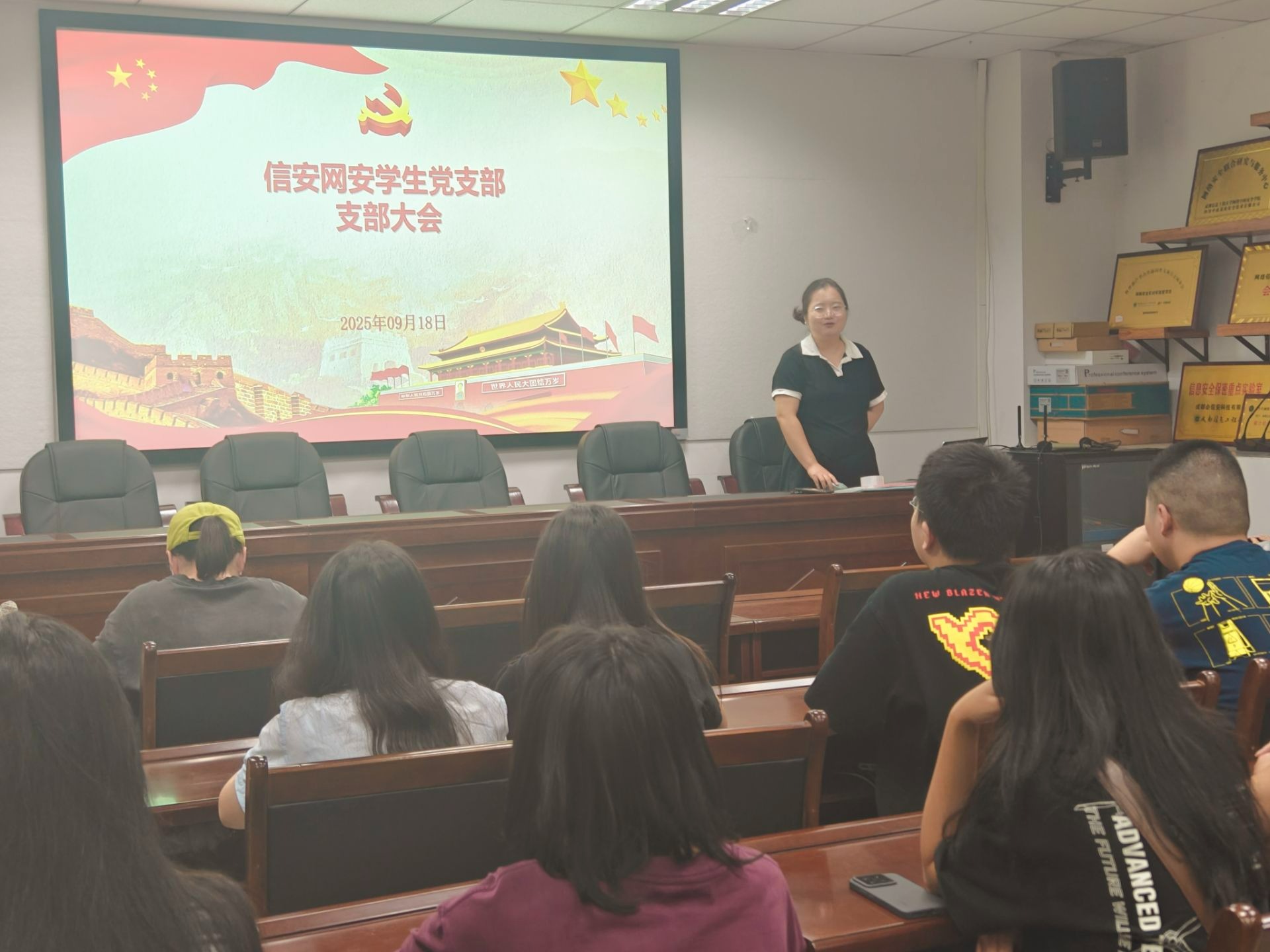 2025年9月18日下午,点点taptap官方网站信安网安员工党支部于信达楼A402会议室召开党员大会暨“铭记抗战历史,担当强国使命”主题党日活动。会议由支部书记韩阳主持。