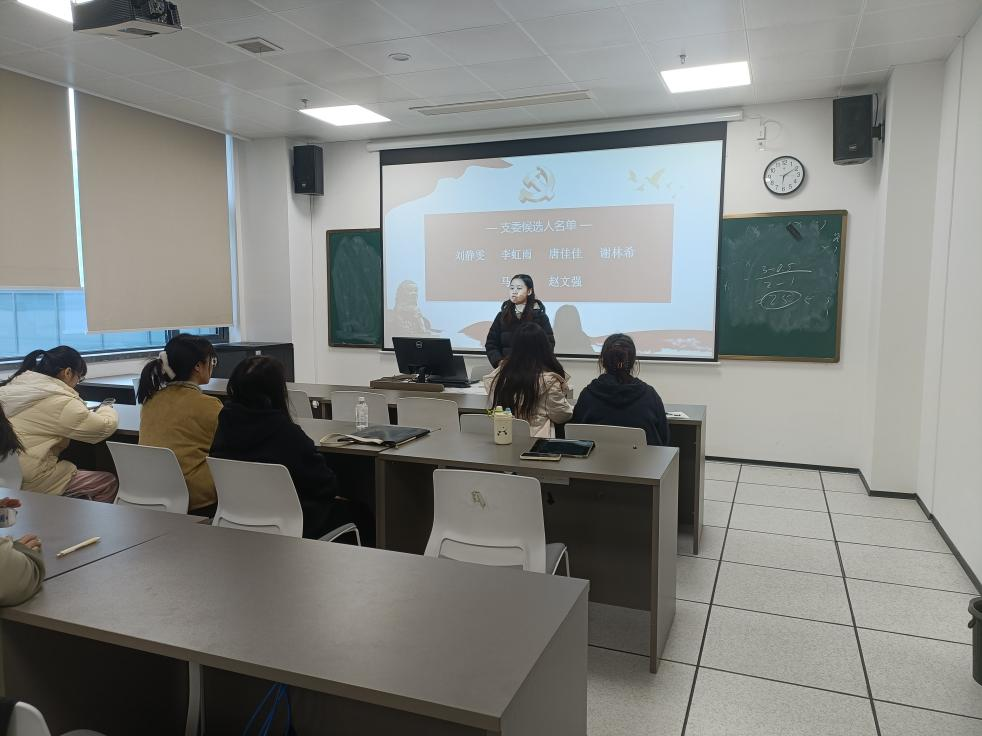 会议第二项,进行支部委员增补选举。本次增补严格遵循党组织相关程序,旨在进一步加强支部建设,提升组织活力。经前期酝酿与推荐,共产生六位支委增补候选人。唐梅同志就选举程序及候选人基本情况作了说明。选举采取无记名投票方式,在监票人监督下,全体党员秉持公平、公正、公开原则,有序完成投票。经统计,刘静雯、李虹雨、唐佳佳、谢林希四位同志当选为新一届支部委员会委员。唐梅同志代表支部向新当选委员表示祝贺,希望他们认真履职,积极作为,共同推动支部工作高质量发展。
