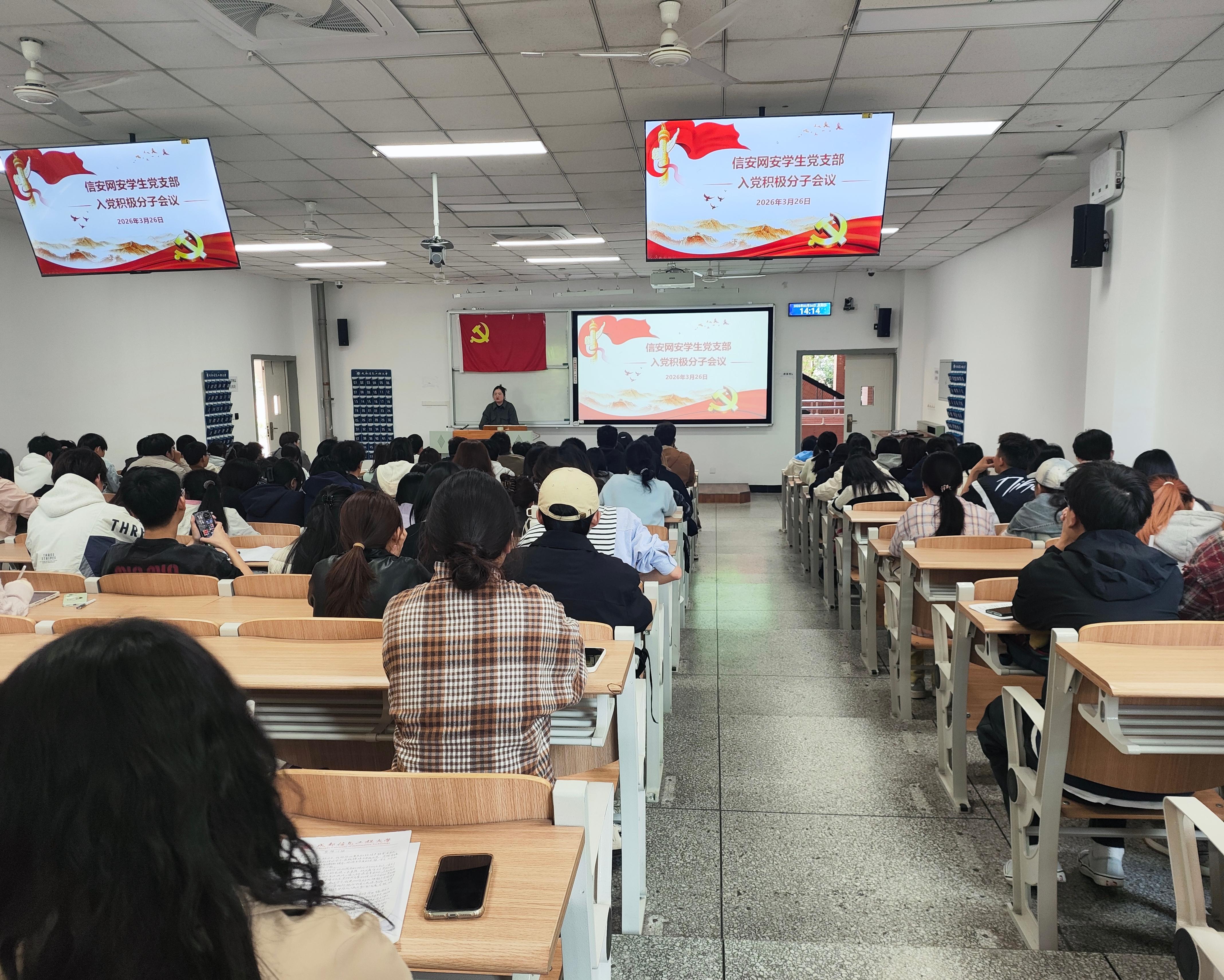 2026年3月26日下午,信安网安员工党支部于H2104教室召开入党积极分子会议,此次会议由党支部书记韩阳主持。