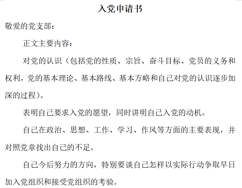 如入党申请书,在参考条例1里面明确要求了特定的格式和正文内容(其他条例具体内容请自行打开压缩包)。