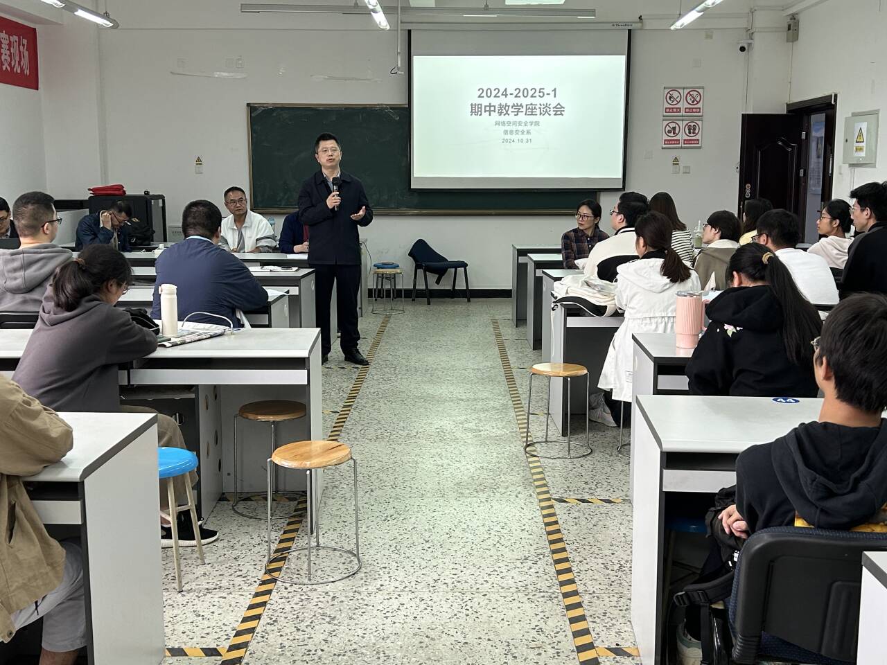座谈会分专业进行,分别在信达楼A402(网络工程专业)、信达楼B401(信息安全专业)、信达楼B403(网络空间安全专业)、信达楼C405(物联网工程专业)进行。