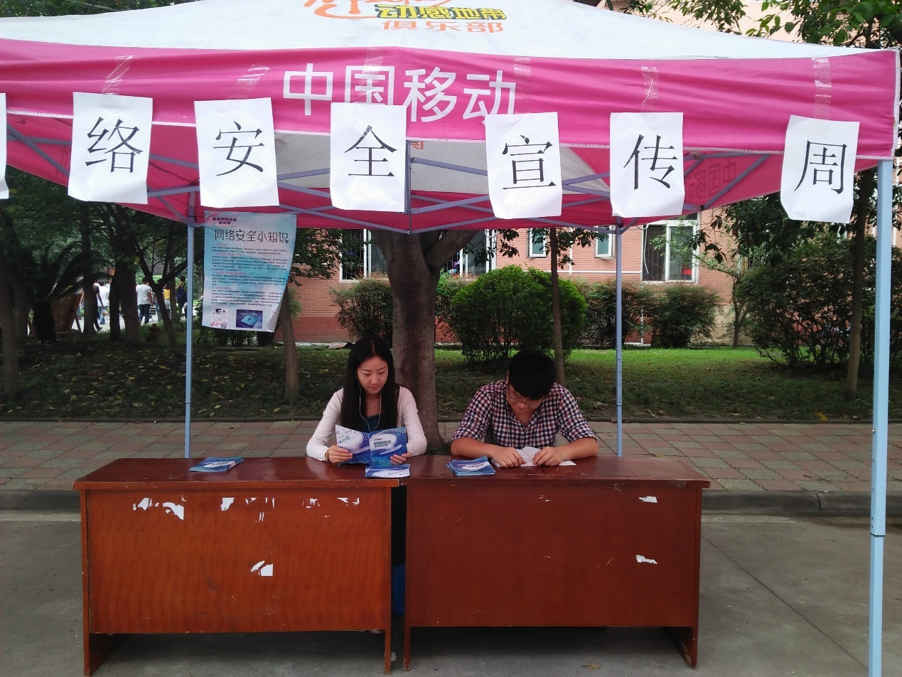 为了使同学们更加了解网络安全,意识到网络安全的重要性,在2016年9月19日到9月25日,信息安全工程学院第十三届分团委员工会在食堂门口进行了摆点宣传活动。出席这次活动的有信息安全工程学院分团委员工会老师和第十三届员工会全体成员。