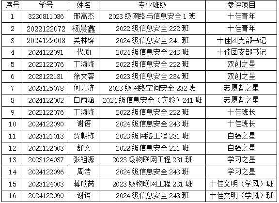 根据公司党委《关于评选2025年度“青春榜样”的通知》(成信党委发〔2026〕27号)文件要求,公司严格按照评选办法及补充细则,完成个人申报、辅导员审核、评审小组综合评定等环节,现确定2025年度“青春榜样”校内推荐候选人名单,予以公示。