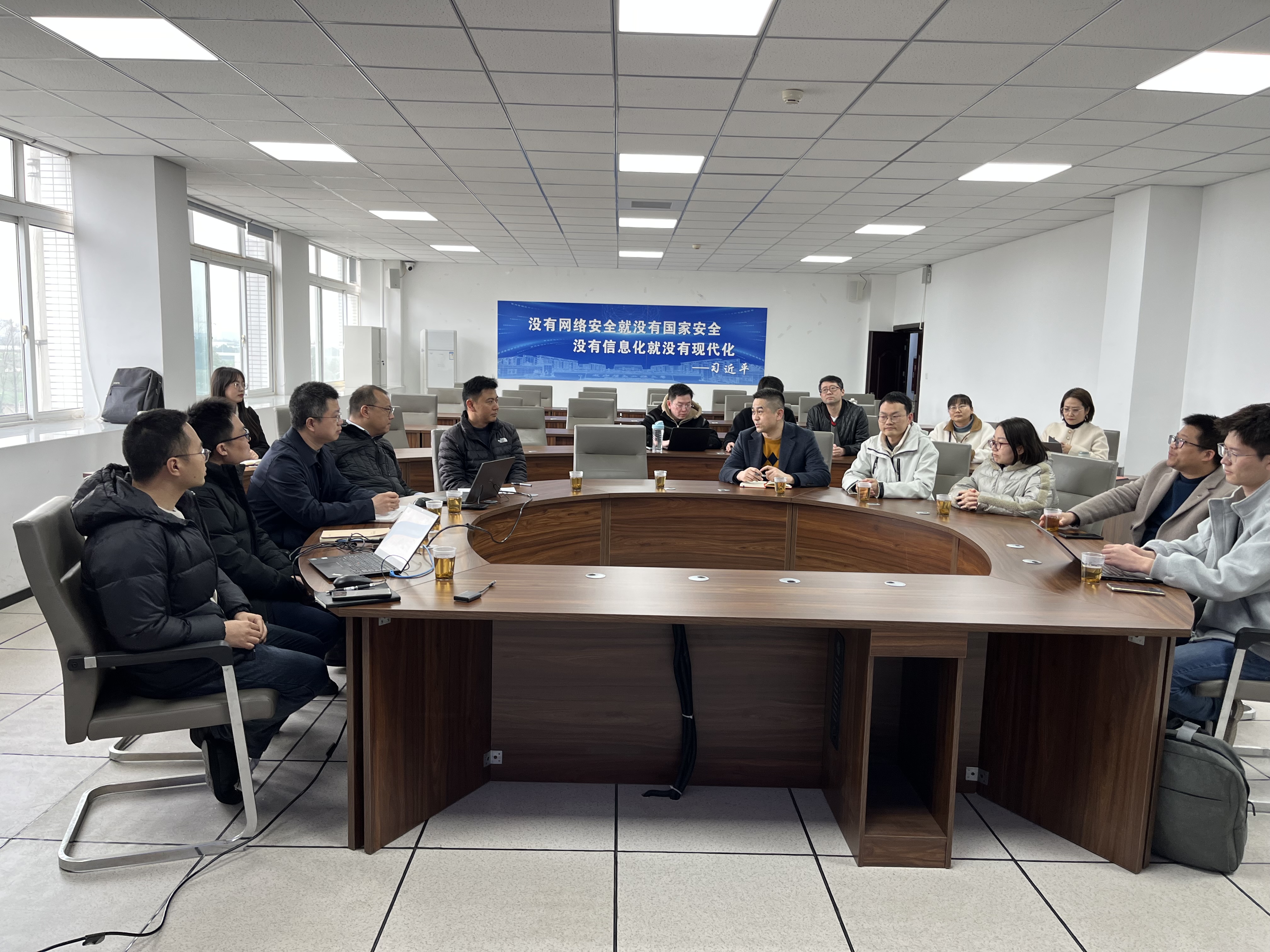 2025年3月13日下午3点,重庆安全技术职业学院信息安全技术应用专业教研室主任柯辉、专业负责人梁晶和专业教师石教坤等一行来公司开展网络安全相关专业和实训平台建设交流,活动在信达楼B409举行。