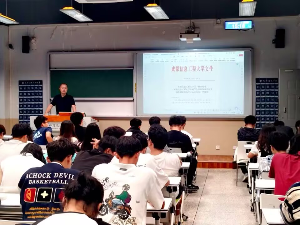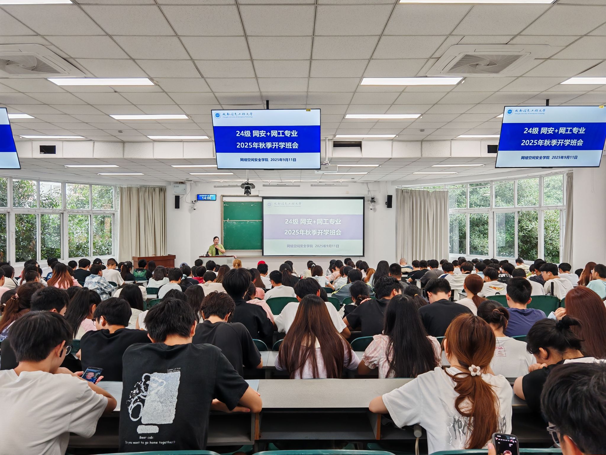 会议伊始,全体同学共同收看了“2025年四川省大中小学思政教育秋季开学第一课”。随后,韩阳对上学期的整体情况进行了全面回顾与总结,重点分析了学业成绩数据。针对同学们普遍关注的发展规划问题,韩阳详细解读了《网络空间安全公司推荐2026届优秀本科毕业生免试攻读硕士学位研究生工作方案》及《综合素质加分细则》,她建议大家尽早明确目标,合理规划,全面提升自身竞争力。接着,韩阳重申了学校关于学业警示制度与课程考勤管理的相关规定,严肃强调了无故缺勤、学业成绩不达标可能带来的严重后果。她同时发起“非必要无手机课堂”倡议,号召同学们自觉减少课堂手机使用,珍惜课堂时光,提升学习效率。会上,韩阳还要求同学们牢固树立总体国家安全观,增强反间谍、反渗透的意识和能力,并在日常网络活动中注意辨别信息,文明上网,坚决维护网络安全。此外,针对近期需关注的公共卫生问题,韩阳介绍了基孔肯雅热的疫情动态与防控知识,提醒同学们注意防蚊灭蚊,保持环境卫生,做好个人健康防护。