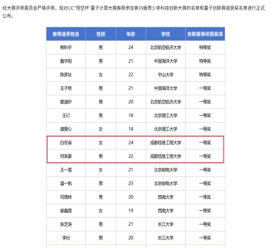 近日,由中国通信学会主办、中国通信学会量子计算专业委员会承办、本源量子计算科技(合肥)股份有限公司协办的第一届CIC“悟空杯”量子计算大赛圆满收官。点点taptap官方网站(芯谷产业学院)先进密码与量子计算团队师生表现优异,荣获全国一等奖,两名研究生入选“优胜选手”并直通第39届全国青少年科技创新大赛。
