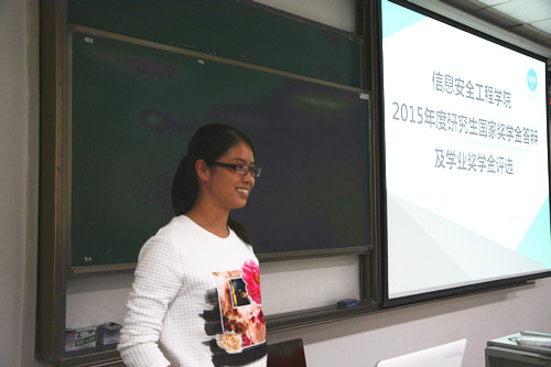 在2015年研究生国家奖学金及学业奖学金的评定过程中,学院严格按照学校相关文件和《信息安全工程学院研究生国家奖学金评审细则》、《信息安全工程学院研究生学业奖学金评审细则》的相关规定,组织符合条件的同学申请。通过本次公开答辩和评选,每位同学各自以精彩的PPT以及详实的评奖材料总结了自己进入研究生学习阶段之后的学习及科研成果,在所有同学面前公开展示出自己的风采;同时每位同学也对大家的成果和得分依据有了清楚的了解。