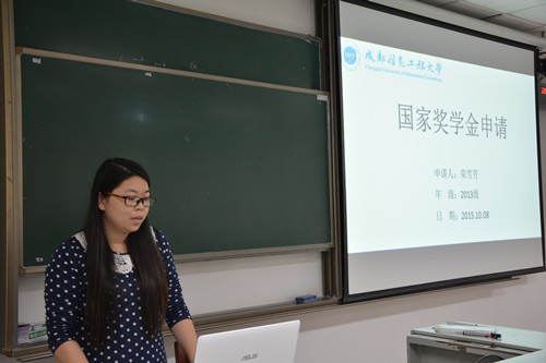 杨老师解读了评审工作的相关文件和学院评审细则后,申请“2015年研究生国家奖学金”的同学依次进行了评审答辩。之后,分年级对学业奖学金进行了评定。