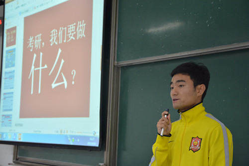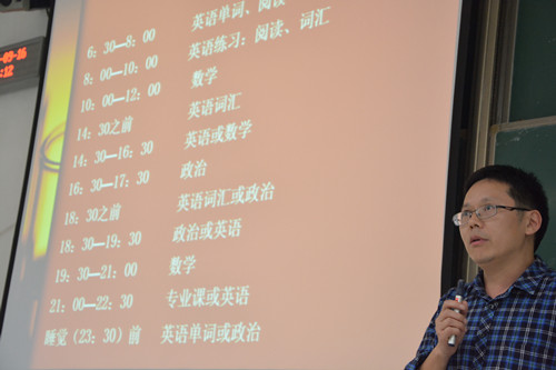 张仕斌就“考研要做什么?”这个问题对同学们做了详细的讲解,使同学们更加明确了考研的动机、需要着手做的准备。之后,2015级研究生新生跟2012级本科同学交流了去年考研复习时的时间安排、学习方法以及考研过程中的思想和精神收获。认真聆听着学长们的切身体会,同学们时而点头,时而会心一笑,收获了很多考研经验。