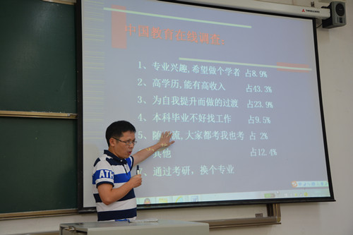 之后,张仕斌副经理对同学们普遍存在的考研规划、选择高校等问题进行了探讨与分析,就为什么考研?考研要做什么?学校及学院的考研政策等问题对同学们做了详细的解读,使同学们更加明确了考研的动机、需要着手做的准备。