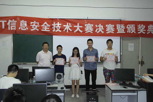 5月24日下午,由教务处和校团委主办,信息安全工程学院承办的第十一届信息安全技术大赛决赛暨颁奖典礼在6606教室举行。信息安全工程公司党总支书记许鸿涛,信息安全专业教研室主任吴春旺等六位老师出席了此次颁奖典礼。