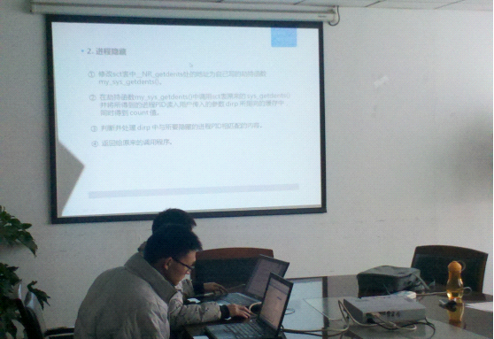 肖磊组正在进行答辩,他们关于答辩内容准备十分充分,作品为《linux_rootkit技术的应用实现》。