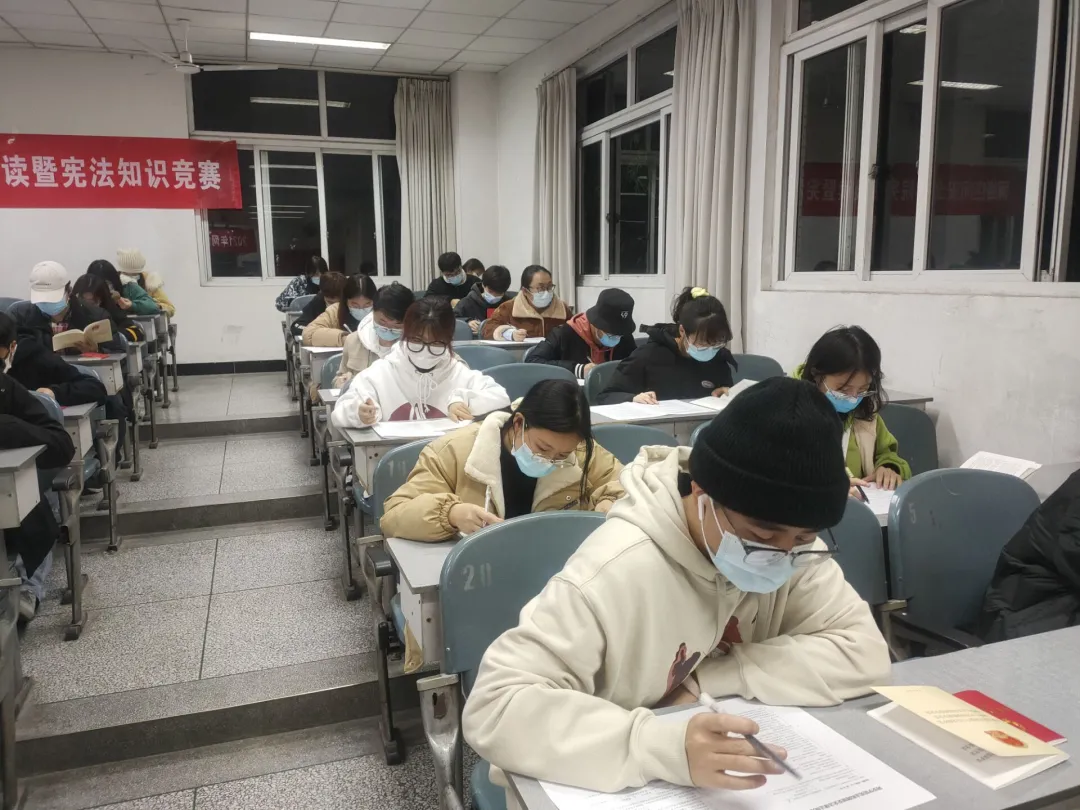 本次竞赛采取开卷考试形式,题型包括单选题、多选题、判断题和简答题。待所有人签到并领取中华人民共和国宪法和中华人民共和国网络安全法两本册子之后,主持人上台带领所有党员齐读中华人民共和国宪法第1-15条法律。随后,主持人向参赛者介绍本次知识竞赛规则和纪律要求:参赛者在考试期间不可使用任何电子产品。答题过程中,参赛者聚精会神,奋笔疾书,教室里回荡着翻页声。本场竞赛时间为一小时,结束后,参赛者们安静有序的离场。批阅试卷的过程保证公平、公正、公开。