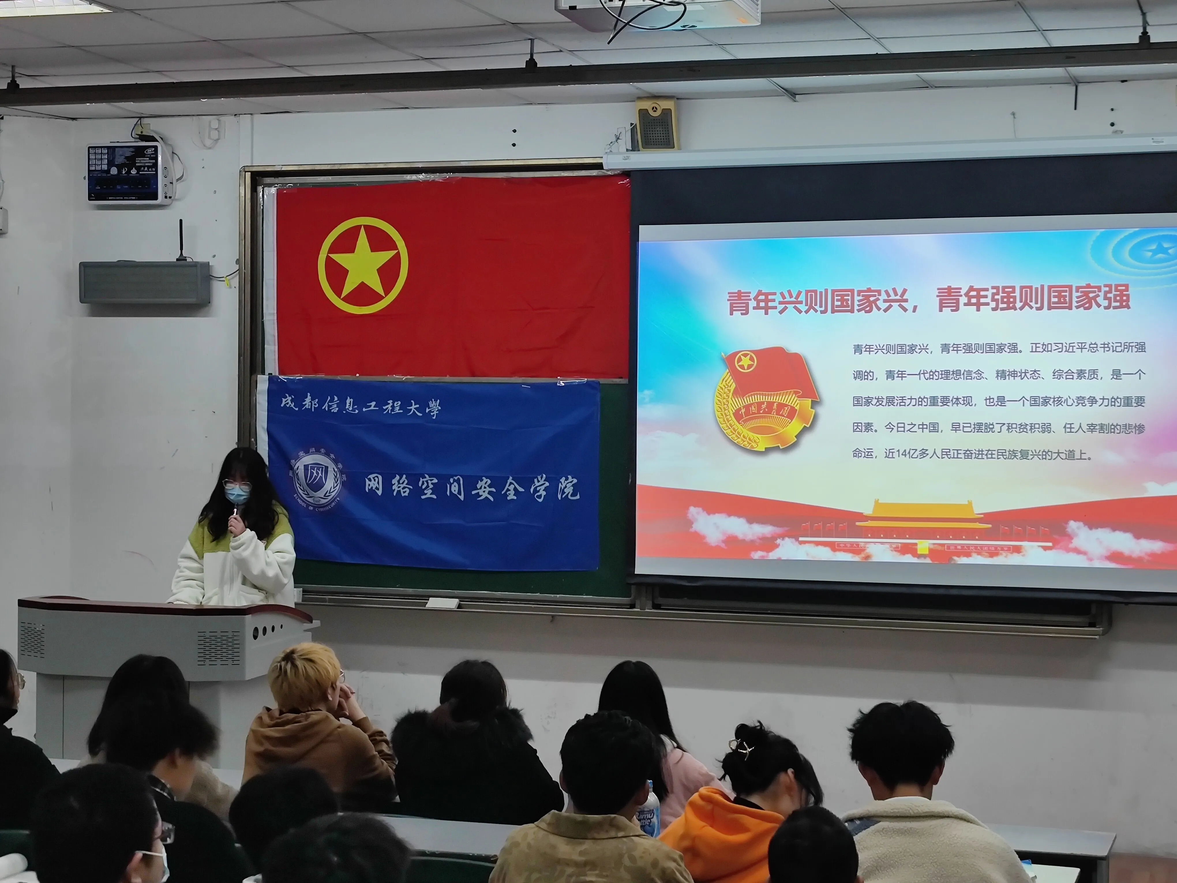 谢姿宇学姐教导学员要坚持真理、修正错误、互相帮助、共同提高,并强调了习近平总书记所提出的“青年兴则国家兴,青年强则国家强”,鼓励学员们争做新时代合格团员。