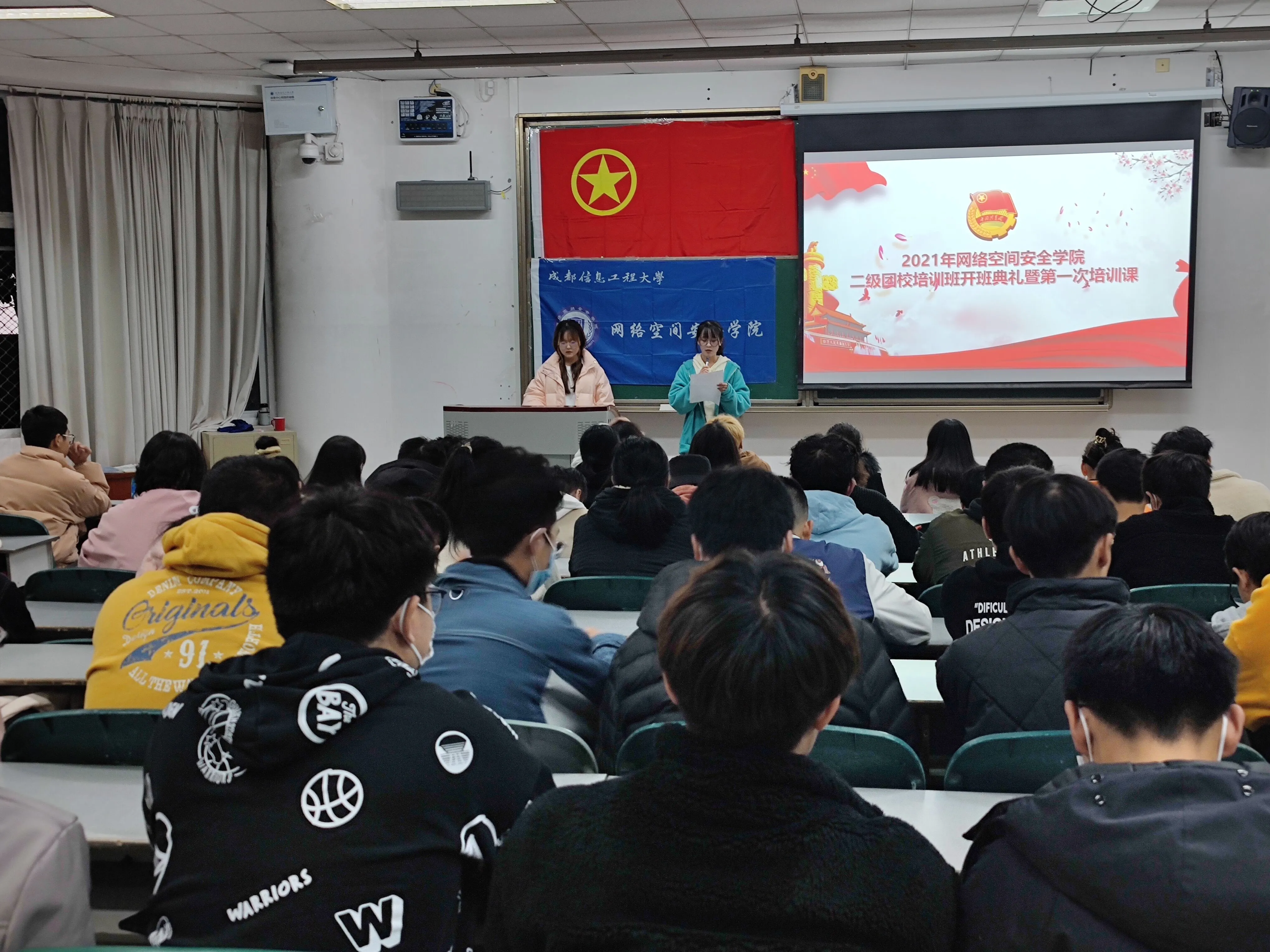 11月28日晚,点点taptap官方网站二级团校开班典礼暨第一次培训课在教室4112举行,点点taptap官方网站团委员工会主席团成员蒋芸潞,点点taptap官方网站团委员工会组织部全体成员以及学院入团积极分子、团学干部等参与了本次开班仪式。本次开班仪式由组织部胡越同学主持。