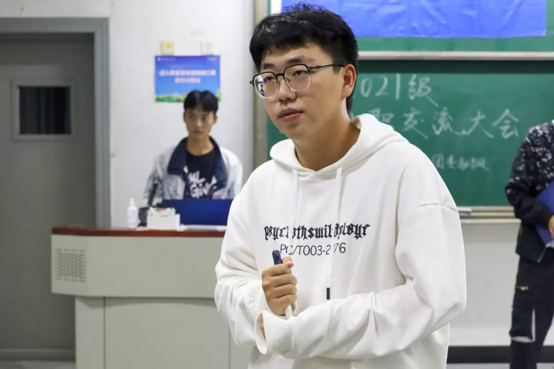 本次会议围绕“交流智慧,分享经验,答疑解惑,促进协作”的主题展开。在会议开始,新生班委代表信安211班长李南骏分享了他入职以来的的工作心得,提出了自己在工作中遇到的问题,也分享了自己解决问题的方法,之后信安211全体班委代表21级全体新生班委进行了班委宣誓。随后,信安184班班长李俊辰围绕“我与班级的那些事”为主题,从“班级展示,班级建设,经验分享,未来寄语”四个方面为新生班委提供了宝贵的管理经验;信安191团支书杨冰玉和网工202团支书王恩曦分别以“大学四年如何提升综合能力”,“如好做好团支书的本职工作”为主题对团支书具体的工作职责与内容进行了介绍;信安205班班长戴尔森从工作职能和能力要求两个方面对新生班委提出了要求,并且分享了自己的班委经验;物联网201副班长刘学兵从协助工作和自身学习两方面进行发言;网工202班长吴文杰以“如何平衡班务与员工工作”为话题展开,并且宣传各班委要积极入党,一心向党。
