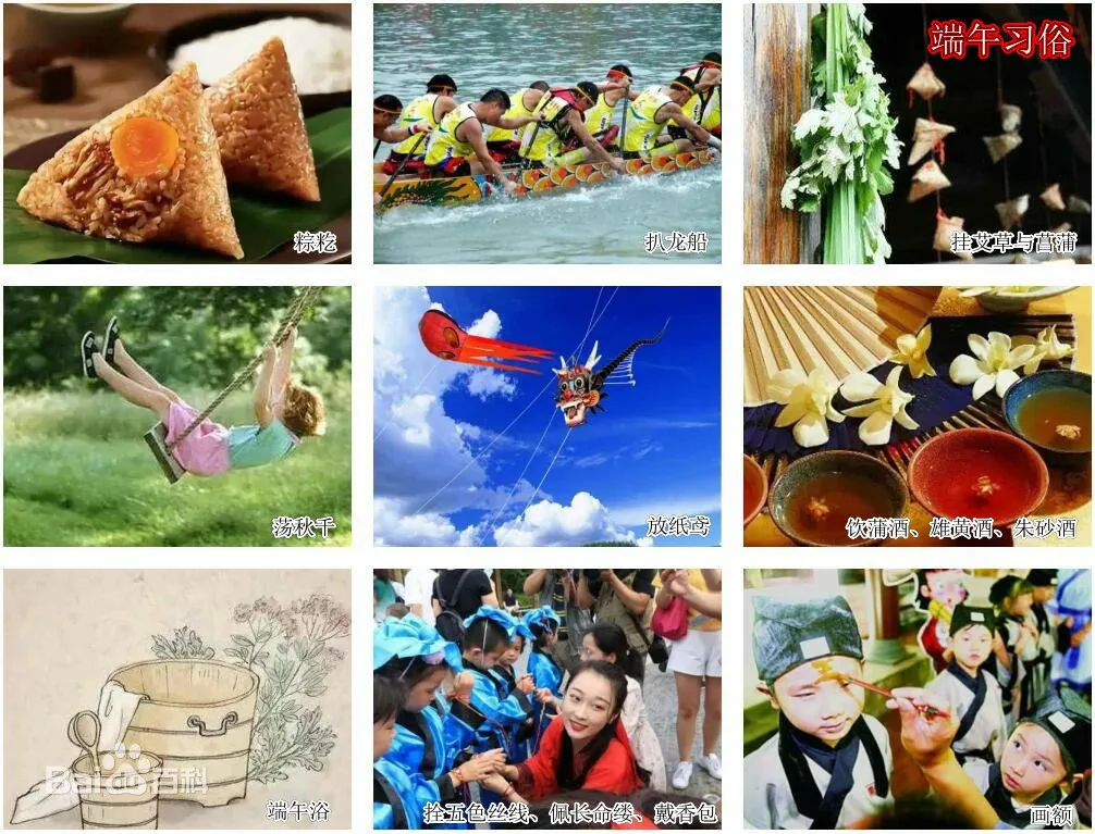 全国各地因地域文化不同而又存在着习俗内容或细节上的差异。端午习俗主要有扒龙舟、祭龙、采草药、挂艾草与菖蒲、拜神祭祖、洗草药水、打午时水、浸龙舟水、食粽、放纸鸢、睇龙船、拴五色丝线、薰苍术、佩香囊等等。扒龙舟活动在中国南方沿海一带十分盛行,传出国外后深受各国人民喜爱并形成了国际比赛。端午食粽之习俗,自古以来在中国各地盛行不衰,已成了中华民族影响最大、覆盖面最广的民间饮食习俗之一。