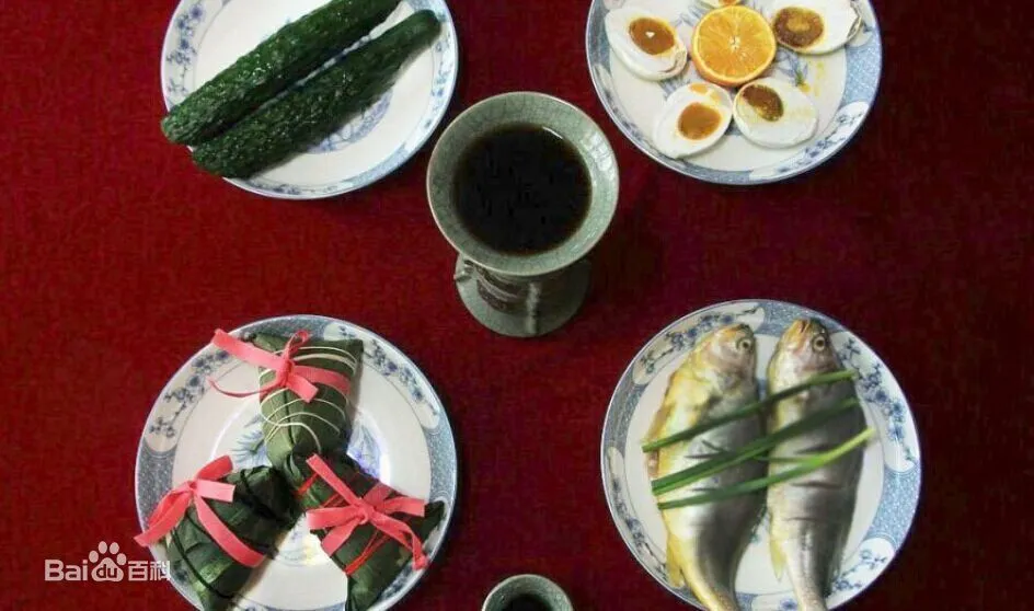 五黄:江浙一带有端午节吃“五黄”的习俗。五黄,是指黄鱼、黄瓜、黄鳝、鸭蛋黄、雄黄酒(雄黄酒有毒性,一般都喝普通的黄酒代替雄黄酒)。也有其它说法,咸鸭蛋可以用黄豆替代。农历五月,江南人称五黄月。