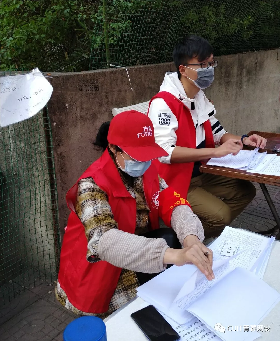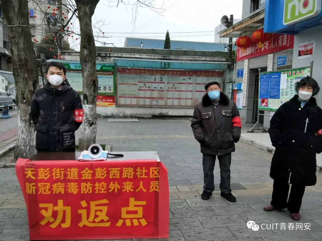 颜金歌,作为一名新时代的老员工和一名光荣的预备党员,颜金歌积极自愿地参与彭州市金彭西路社区志愿服务活动。社区把他分到西干道一个小区卡点协助工作,每天重点对过往车辆进行车辆消毒处理,逐个登记外来人员出入情况。并对社区人员派发“防疫”宣传单。看到社区的防疫物资稀少,2月12日他把仅存的压岁钱1000元捐款给彭州市金彭西路社区,社区书记何传富在大会上说成都信息大学的娇子为社区做了贡献,也为成信大争了光,大家都竖起了大拇指。作为志愿者工作一周以来,每天早上八点到岗,晚上八点下岗,虽说很辛苦,但作为一名党员能为国家作一份力所能及的事情,他觉得非常骄傲。