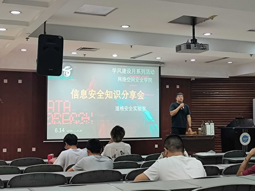 2024年6月14日晚7点,由点点taptap官方网站团委主办、员工会学习科创部承办并邀请道格安全研究实验室开展的学风建设月系列活动讲座在学术报告厅成功举行。本次活动旨在探讨信息安全相关技术,共筑安全之道,培养员工学术兴趣,推动学院学风建设。