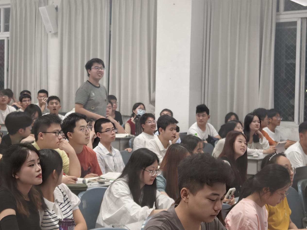 在分享环节结束后,进入提问环节,在场的同学们与嘉宾进行交流互动,他们就自己在四六级备考方面不懂的问题提出疑问,嘉宾们针对问题认真思考,并给出相应的意见和解决办法。